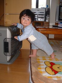 今月、ハイハイと、つかまり立ちができました。