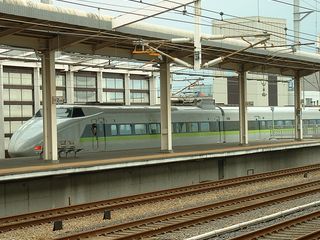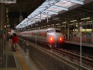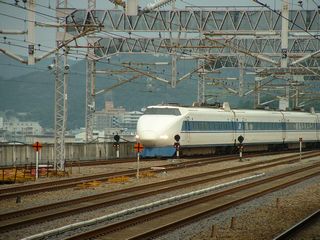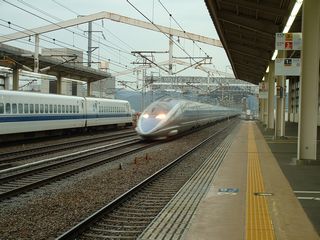【新幹線 500系】 のぞみ 走行区間:東京〜博多 最高速度:300km/h 好き度合:激 走っているのを激写したんだ! 奥には300系のぞみ。 【1031】 |